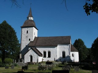 Vid kyrkogårdsgrinden ligger ett par stenhällar med ristningar och skålgropar från bronsåldern och intill kyrkporten står en runsten. De älsta delarna av kyrkan är från 1100-talet och 1764 slog blixten ner och förstörde det mesta av trä. 1783 fick man överta altarskåpet från den förfallna Kärnbo gamla kyrka.