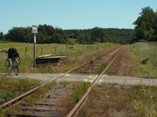 Jag åker vägen söderut igen för att ta mig ner mot Läggesta. Har inte läst kartan tillräckligt noga och får vända tillbaka några hundra meter för att hitta grusvägen mot Hedlanda. En bit är vägen svårcyklad med grovt grus och stenar men sedan blir den bättre igen. Jag kommer ner mot järnvägen igen och stannar till vid Sjöbyggets hållplats. Det är svårt att tänka sig att det här var huvudlinjen mellan Södertälje och Eskilstuna. Här åkte jag snälltåg i början av 1990-talet. Nu ser det ut som ett litet övervuxet industrispår.