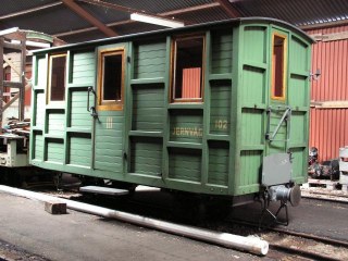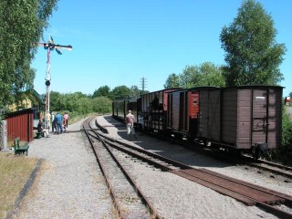 Det börjar bli lunchdags och jag väljer mellan en restaurang på Storgatan som serverar dagens och en pizzeria i kvarteret bakom. Det får bli lunchrestaurangen som serverar pannbiff med löksås och potatis för 65kr. Jag tillfrågas om vad jag vill dricka och föreslås någon läsk, sodavatten eller lättöl. Lättöl låter bäst och han bakom disken tar upp ett glas och öppnar kranen till lättölen. "Blurp". Ner under disken och ut i köket med ölfatet. Strax återkommer han och meddelar att ölen är slut. Han har apelsinjuice också. Okejdå. Fram med en kartong Euroshopper ur kylskåpet och häller upp. Salladsbordet består av pizzasallad, majs och ananas samt alla dessa tre nedblandade i någon vit dressing. Jag sätter mig utomhus och bläddrar i turistbroschyrer samtidigt som jag äter. Efter lunchen åker jag ner till järnvägens stallar och kikar in. I vagnhallen står bland andra den enda tvåaxliga personvagnen som gått på 600mm-banorna: KLJ C 102.