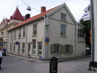 Huset byggdes 1909 av köpmannen Fritz Lindell. (Det står mer information på mässingsskylten.) I korsningen Storgatan-Munkhagsgatan ligger ett 1700-talshus som har varit handelsgård. Det är nu tömt på hyresgäster inför en kommande renovering. Dags att dokumentera så kanske man kan ta en "efter-bild" någon annan gång.